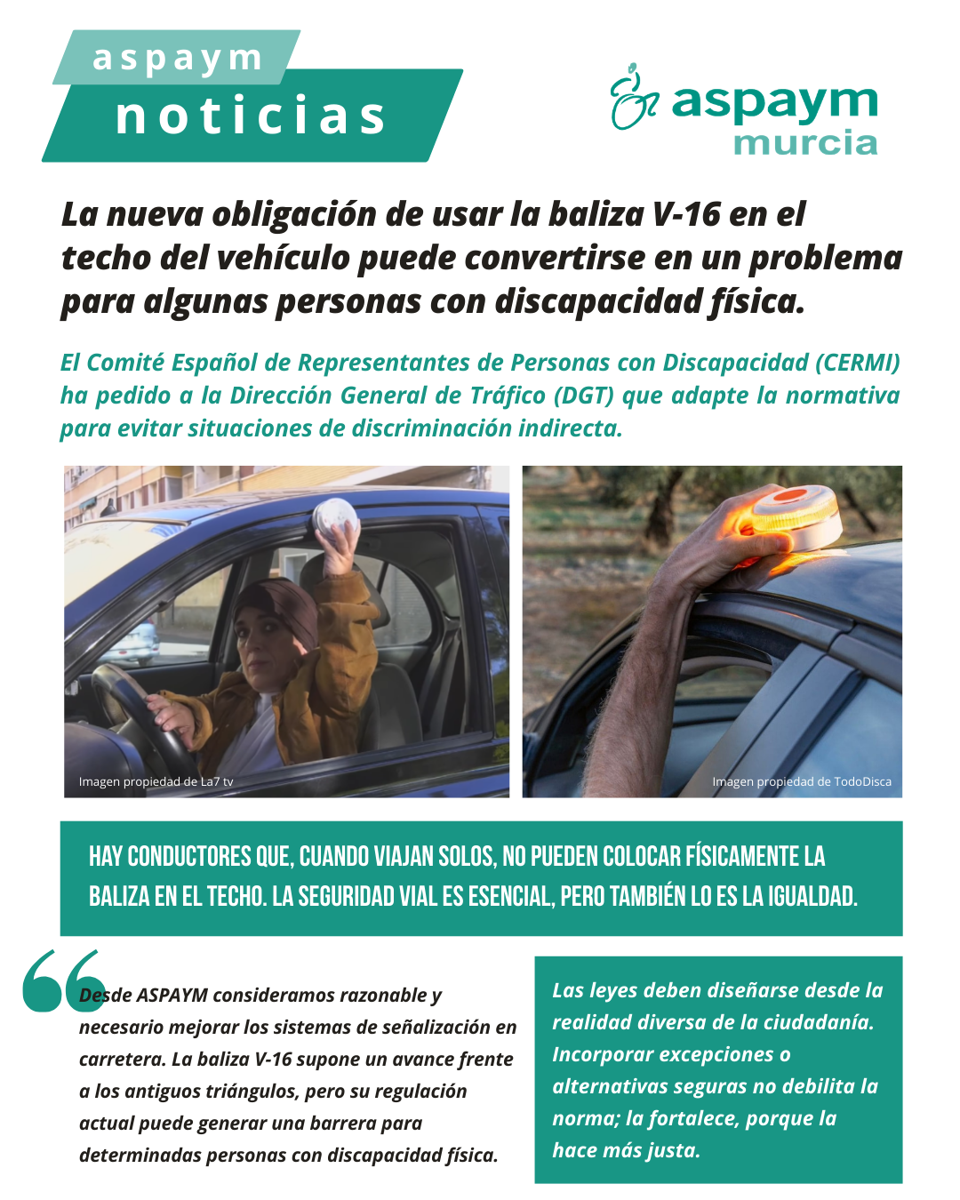 El CERMI pide a la DGT adaptar la normativa de la baliza V-16 para evitar discriminación a conductores con discapacidad
