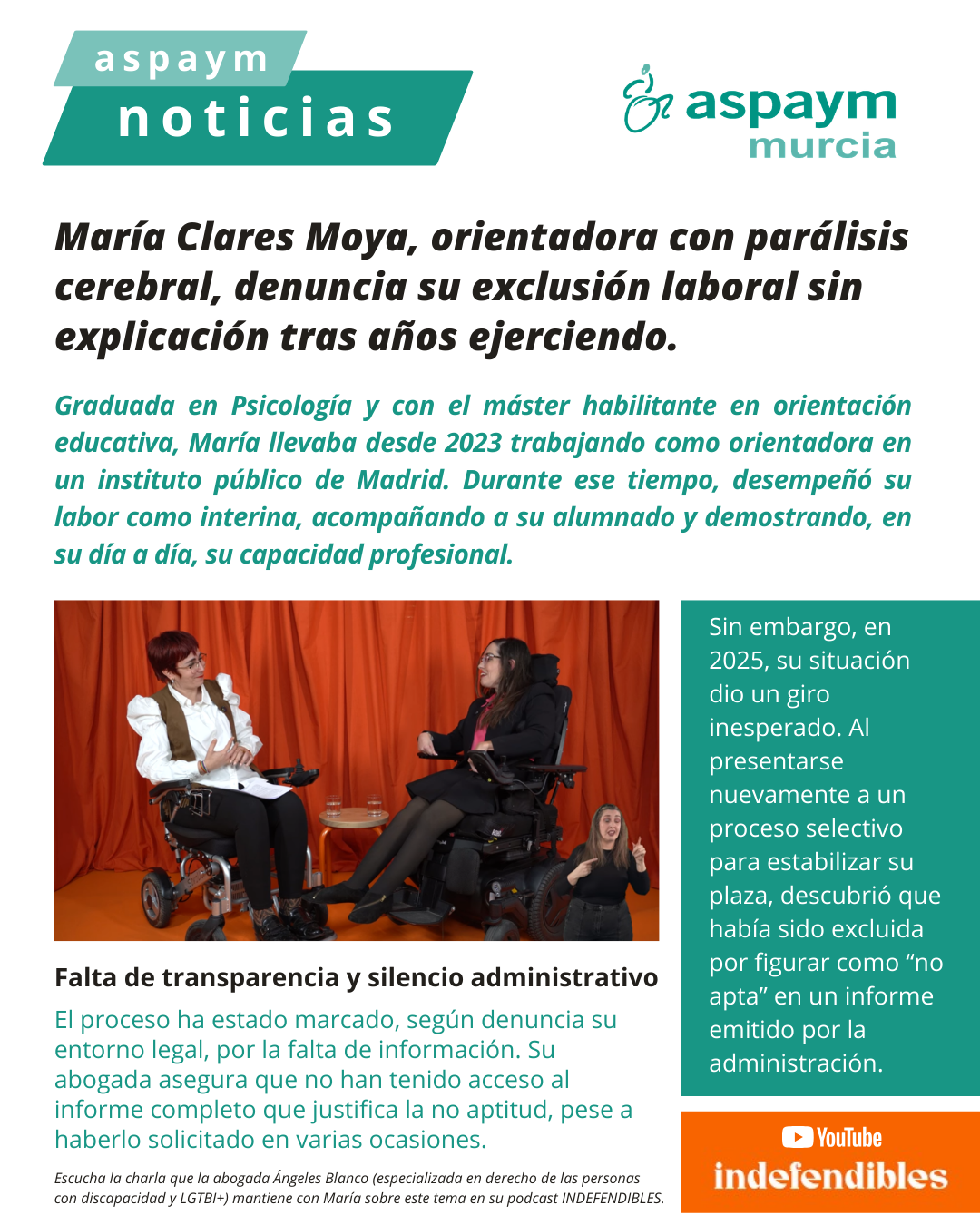 Una orientadora con parálisis cerebral denuncia su exclusión laboral sin explicación tras años ejerciendo