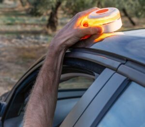 Desde el 1 de enero de 2026 es obligatoria la utilización de la baliza V-16 conectada en caso de avería o accidente en carretera. Este dispositivo debe colocarse en el punto más alto posible del vehículo, generalmente el techo, sustituyendo definitivamente a los triángulos de emergencia.