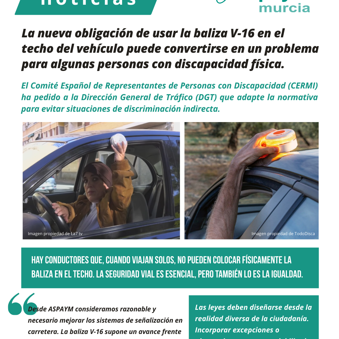 La paradoja, señalan desde la entidad, es que la baliza V-16 nació precisamente como una alternativa más segura e inclusiva frente a los triángulos de emergencia. Sin embargo, su regulación actual podría dejar fuera a determinadas personas con discapacidad física.