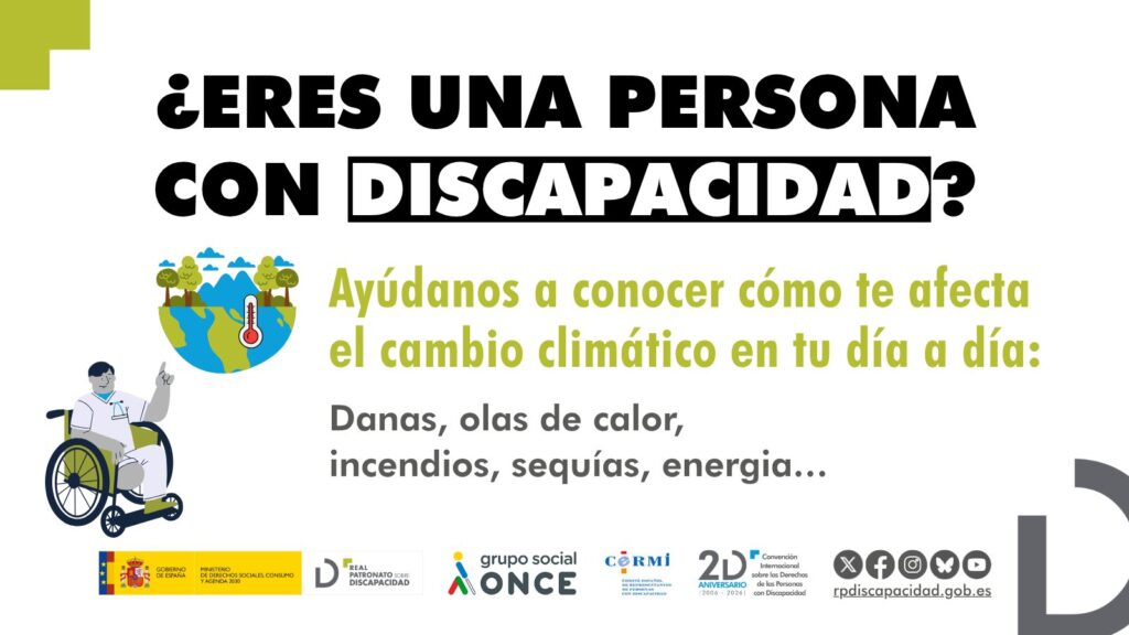 El Real Patronato sobre Discapacidad, en colaboración con el Grupo Social ONCE y el Comité Español de Representantes de Personas con Discapacidad (CERMI), ha puesto en marcha una encuesta nacional para estudiar cómo afecta el cambio climático a las personas con discapacidad en España.