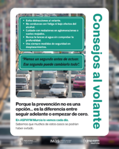 Desde ASPAYM Murcia, queremos hacer un llamamiento a la prevención y a la responsabilidad individual. “Cada año atendemos a personas cuya vida cambió en cuestión de segundos por un accidente evitable. Por eso insistimos tanto en la concienciación: prevenir es la mejor herramienta que tenemos”.