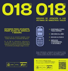 Desde el pasado 23 de abril de 2026, la Dirección General de Tráfico (DGT) ha activado el teléfono 018, un nuevo servicio gratuito y confidencial dirigido a ofrecer información, orientación y apoyo a víctimas de siniestros viales, así como a sus familiares y entorno cercano.