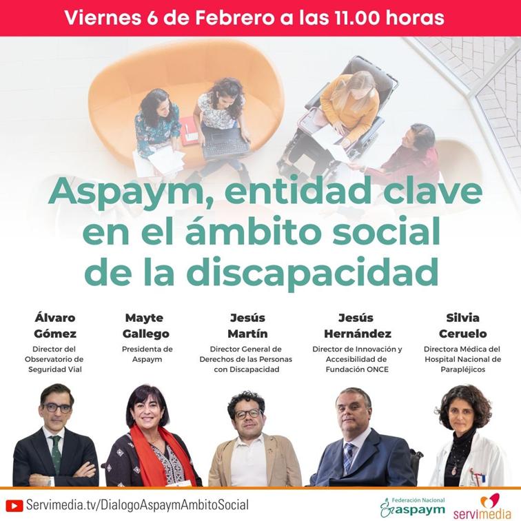 La Federación Nacional ASPAYM será la protagonista del diálogo que la agencia de noticias Servimedia celebrará el próximo viernes 6 de febrero, a las 11.00 horas, bajo el título “Aspaym, entidad clave en el ámbito social de la discapacidad”. El encuentro pondrá en valor la trayectoria, el impacto social y el papel de la federación como referente estatal en la defensa de los derechos de las personas con discapacidad física.