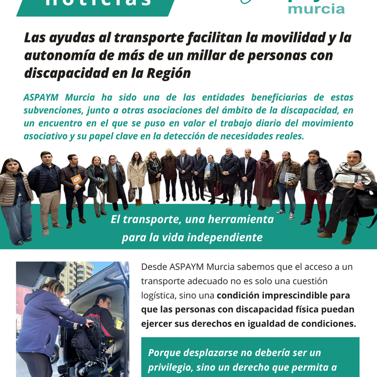 Desde ASPAYM Murcia valoramos positivamente este tipo de iniciativas que ayudan a reducir barreras y facilitan la movilidad de las personas con discapacidad física. No obstante, seguimos reivindicando una mayor inversión y estabilidad en este tipo de ayudas, ya que el transporte accesible es un pilar básico para garantizar la autonomía personal y evitar que nadie se quede atrás.