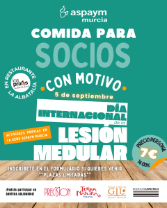 ASPAYM Murcia celebrará el próximo viernes, 5 de septiembre, un acto institucional en su sede con motivo del Día Internacional de la Lesión Medular, bajo el lema: “Mi lesión medular no puede esperar, cada historia cuenta”.